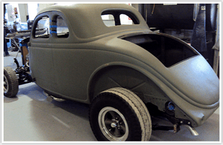 - New gas tank, brake lines, fuel lines, wheels, tires, battery box, radiator, Lokar shifter and emergency brake lever with cables